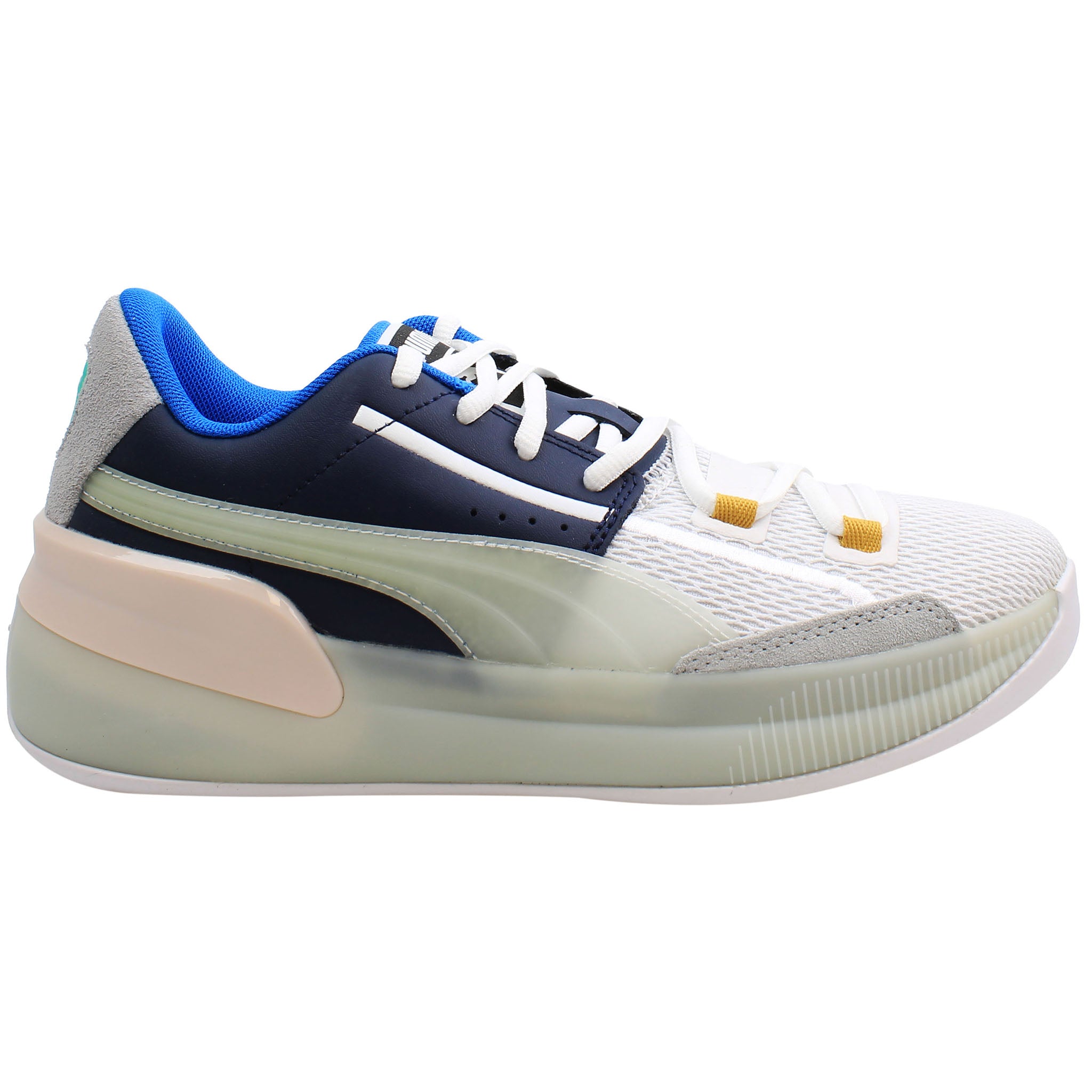 The Puma Clyde Hardwood Men's Multicoloured Trainers offer a vibrant and dynamic design, blending classic style with modern performance. Inspired by basketball heritage, these trainers feature a bold multicoloured upper that combines premium leather and synthetic materials for a sleek, textured finish. The iconic Puma branding and contrasting details add to the eye-catching aesthetic. With a cushioned midsole for added comfort and a durable rubber outsole for superior traction, these trainers are perfect for both on-court action and street-style wear. The Clyde Hardwood trainers embody a fusion of athletic functionality and high-fashion flair, making them a standout choice for those looking to make a statement.